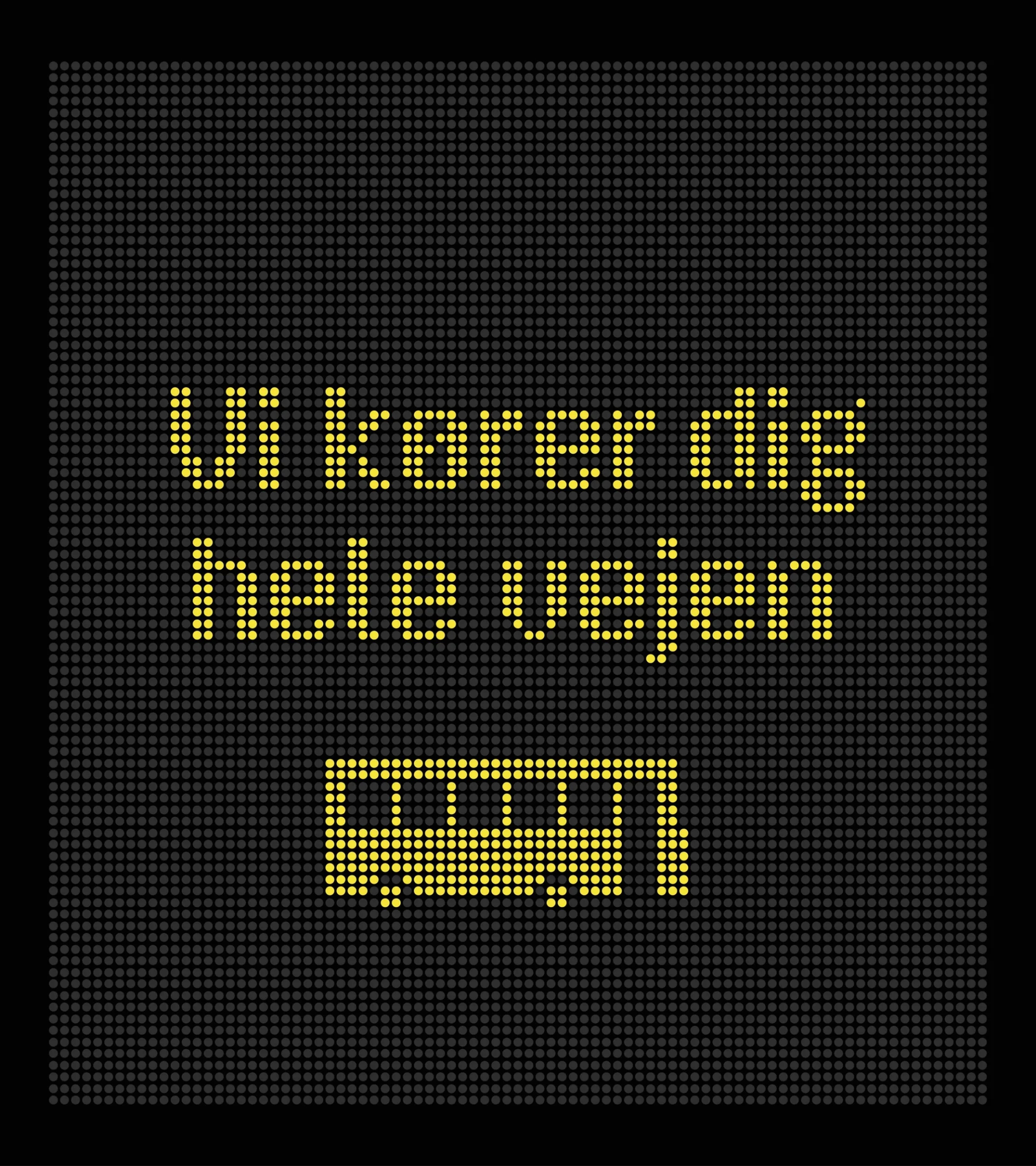 DSB Dot Via 16 represents the latest addition to a lineage of highly legible typographies designed to guide passengers along Zealand’s train tracks and bus routes. The transition from the familiar DSB identity to a low-resolution matrix display mirrors our previous projects for Copenhagen Metro and Movia – all three adapt dots as the cornerstone for a range of adaptations customised for modern LED screens.