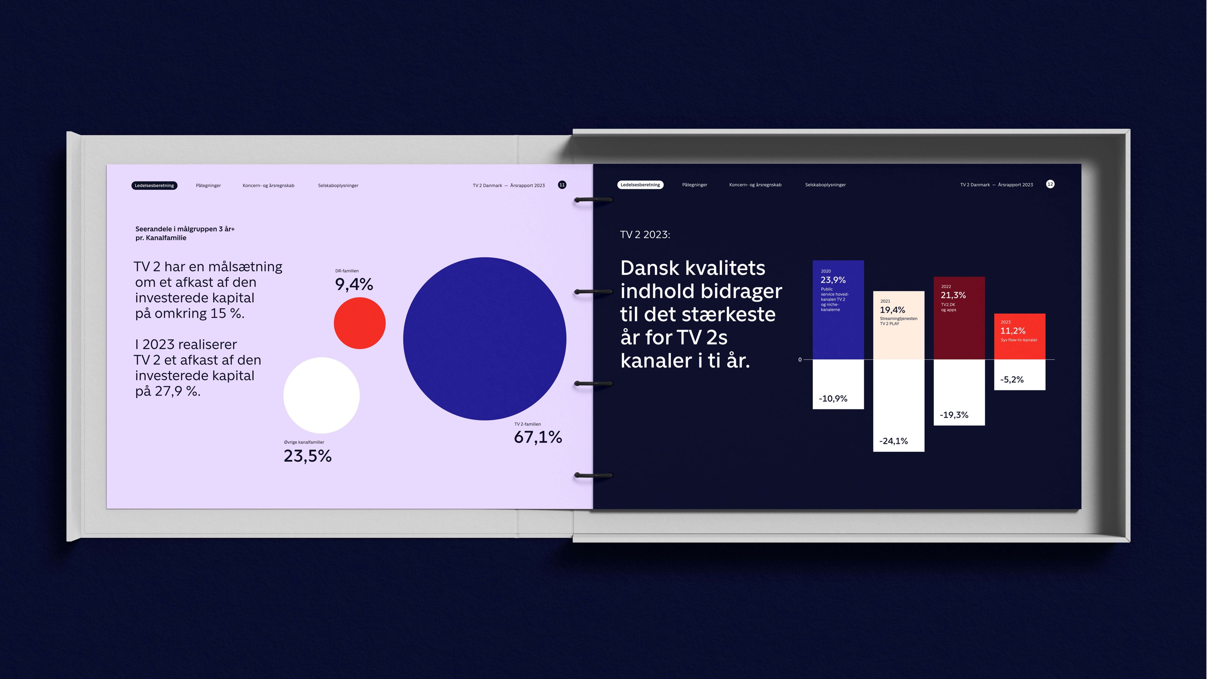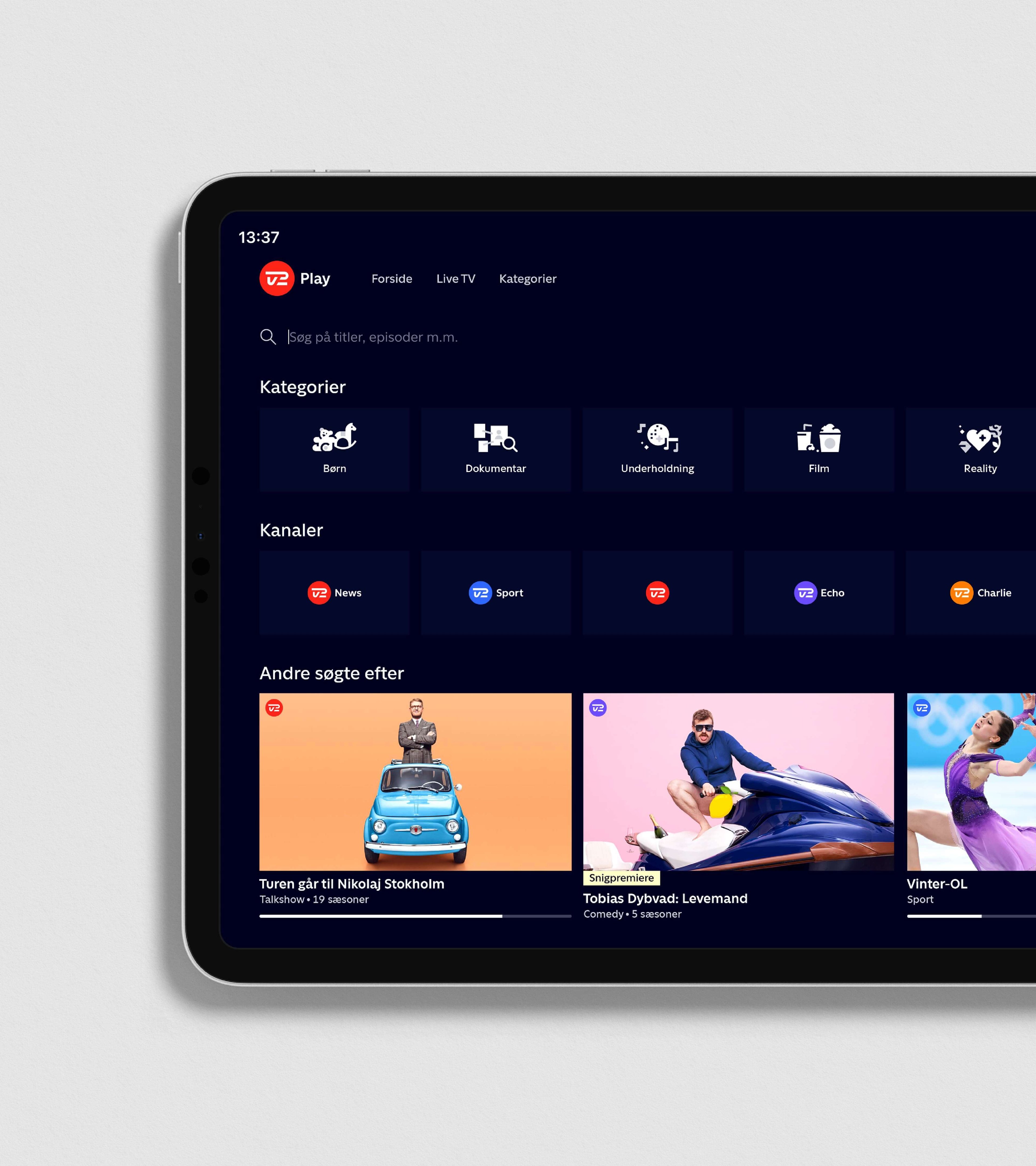 Back in 1988, when TV 2 first appeared on screens in Danish living rooms, it was one TV station with one channel. Today, TV 2 is a digital media company that meets its audience on the move, in queues, during breaks, or at home on several different screens at the same time. Creating unity between all of these touchpoints is of vital importance, in an age when the average Dane’s media consumption is in continual transformation and the entertainment industry is in constant change. In close collaboration with TV 2, we created one coherent brand identity, visual hierarchy and design system, encompassing new logos, typography, colour, motion and iconography that embraces all of TV 2s brands across corporate, streaming and flow.